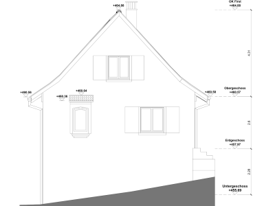 Dieses Einfamilienhaus erfährt einen Besitzerwechsel mit vielen Umbauideen zur Modernisierung. Das Haus wurde innen und aussen mit dem 3D-Laserscanning vermessen. Genauste 2D-Pläne stehen nun für den Umbau bereit.