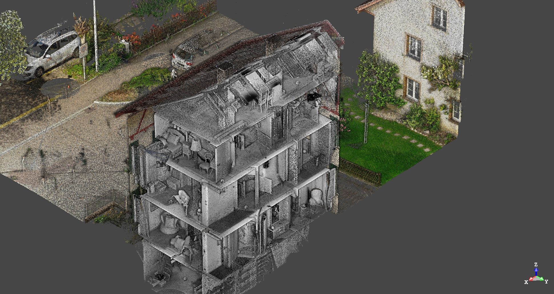 Projektbeschrieb Aufnahme eines bestehenden Einfamilienhaus mittels 3D-Laserscanning von innen und aussen, als Basis für die weitere Umbauplanung. Besonderheiten Darstellung der Riegel in den Fassadenansichten inkl. Überlagerung mit Orthofotos. Leistungen inexo Aufnahmen mittels 3D Laserscanning in Farbe Planerstellung in 2D (Grundrisse und Schnitte) Architekt Oechsli + Partner Architekturbüro AG, Schaffhausen zurück 3. November 2017