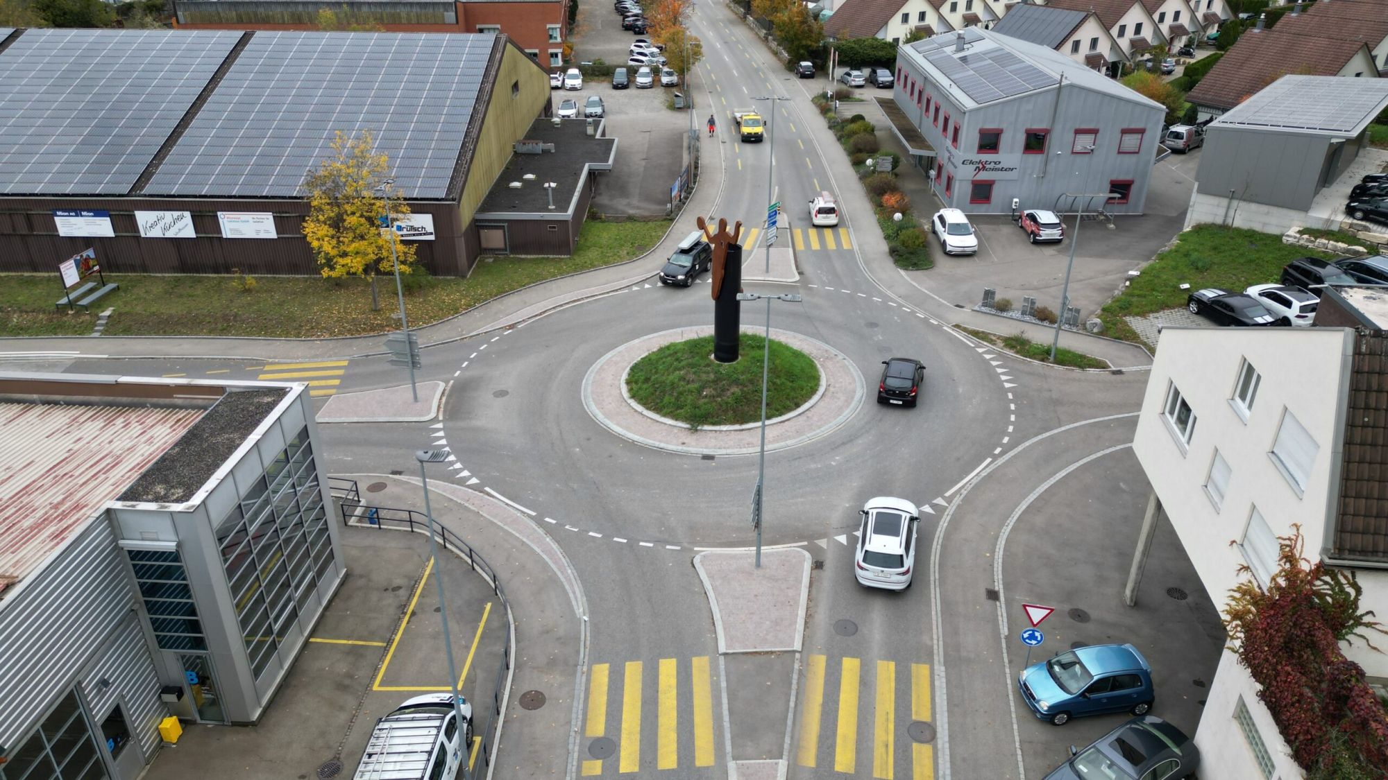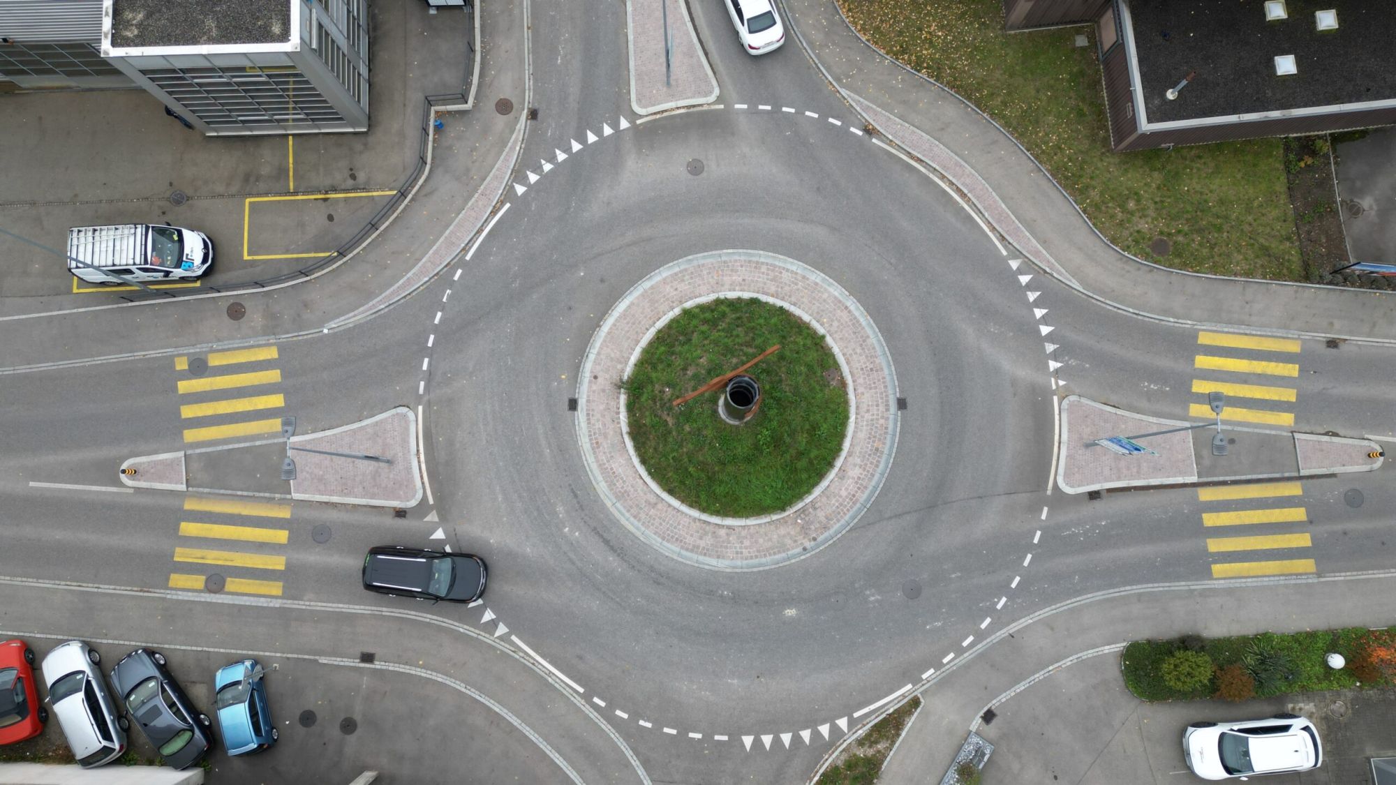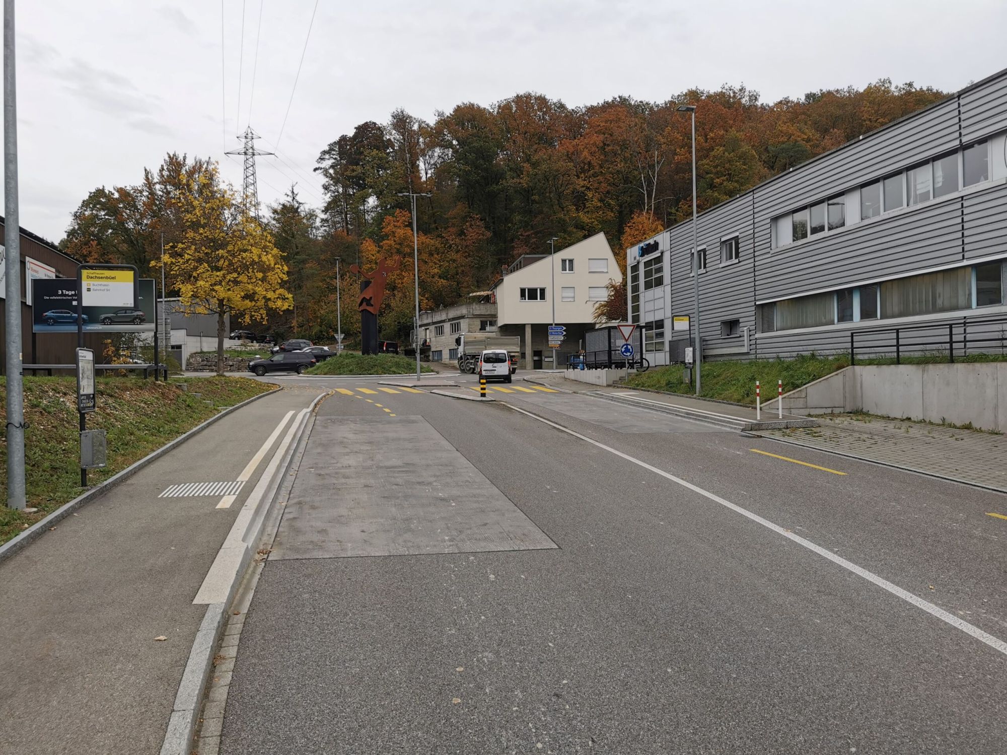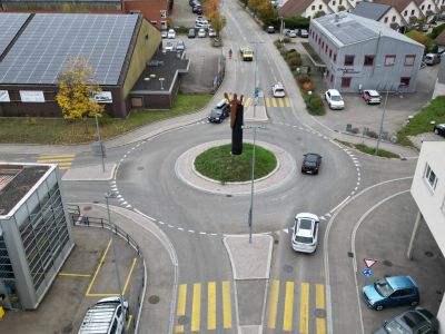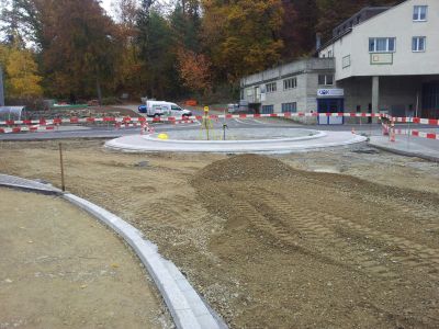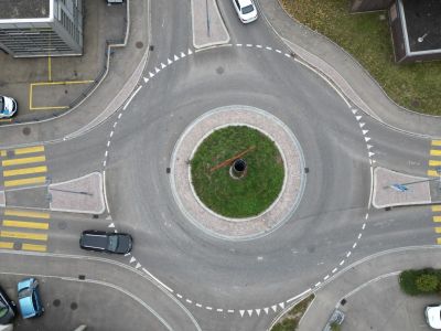 Die Schweizersbildstrasse ist eine Schwerverkehrsroute. Dies musste bei der Planung der Geometrie des Kreisels und der Überfahrflächen berücksichtigt werden
