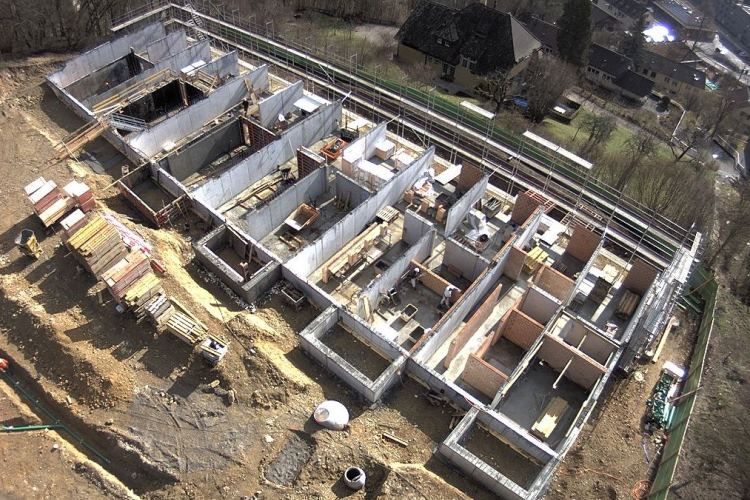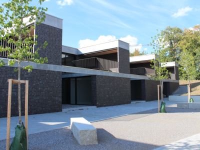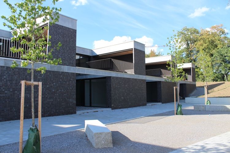 Erstellung eines Wohnparks mit Atriumhäusern, Hofhäusern, Eigentumswohnungen sowie Einfamilienhäusern. Die spezielle Topographie und Grundstücksform erforderte eine abgestufte Baustruktur und Unterteilung in verschiedene Baukörper. Die Tiefgarage mit 34 Parkplätzen verbindet die Geschosswohnungen mit den Reihenhäuser in der Mitte der Überbauung.